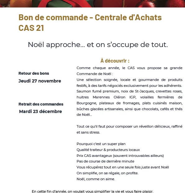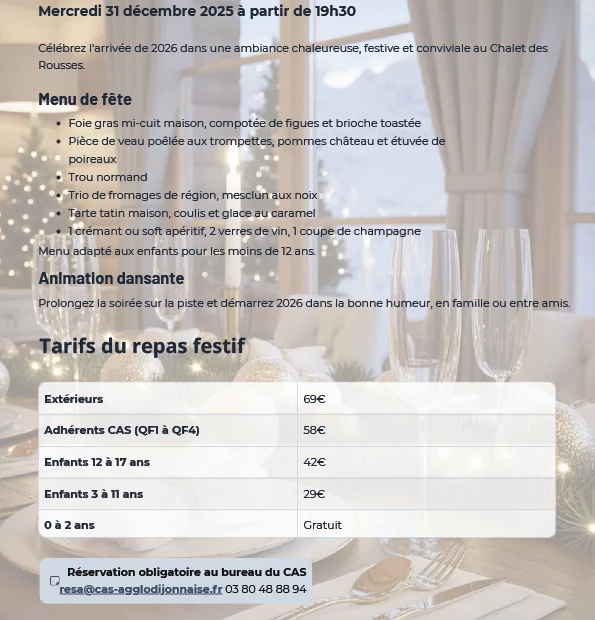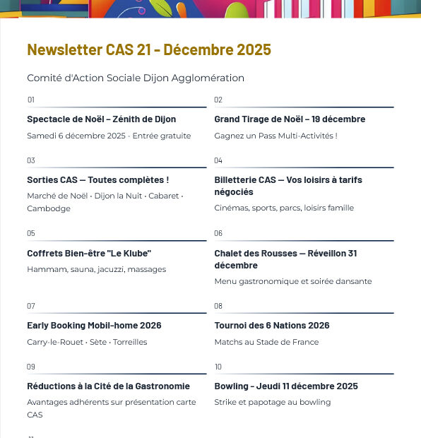 Bonjour, Voici votre newsletter de décembre du CAS, avec toutes les informations et nouveautés de cette fin d’année ! Spectacle de Noël – Samedi 6 décembreEntrée gratuite au Zénith : portes à 13h30, spectacle à 14h.Un moment chaleureux à partager… Lire la suite »News Décembre 2025