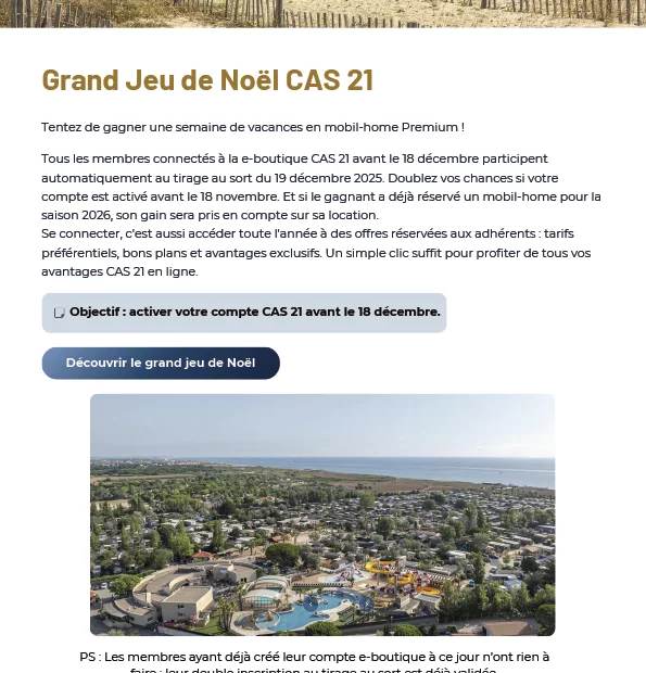 Chers adhérents, L’hiver approche… et avec lui, un concentré d’actualités et d’avantages rien que pour vous ! Découvrez sans attendre la Newsletter CAS 21 de novembre, avec au programme : Grand Jeu de Noël CAS 21 – Tentez de gagner… Lire la suite »Newsletter Nov. 2025