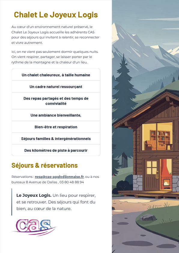 Bienvenue au Chalet "Le Joyeux Logis" du CAS 21 !